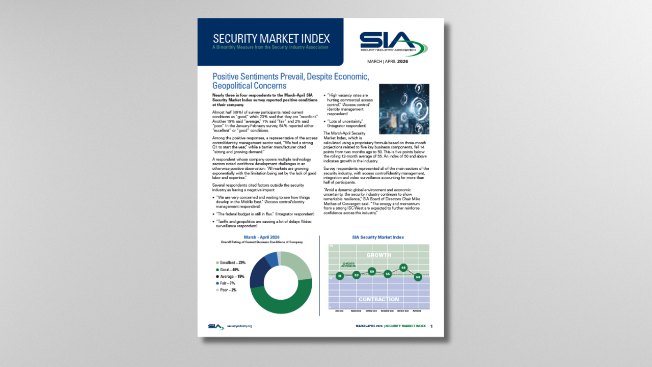 Confidence in the security industry is hitting new highs, according to the results of the January–February 2026 Security Industry Association (SIA) Security Market Index (SMI) survey.