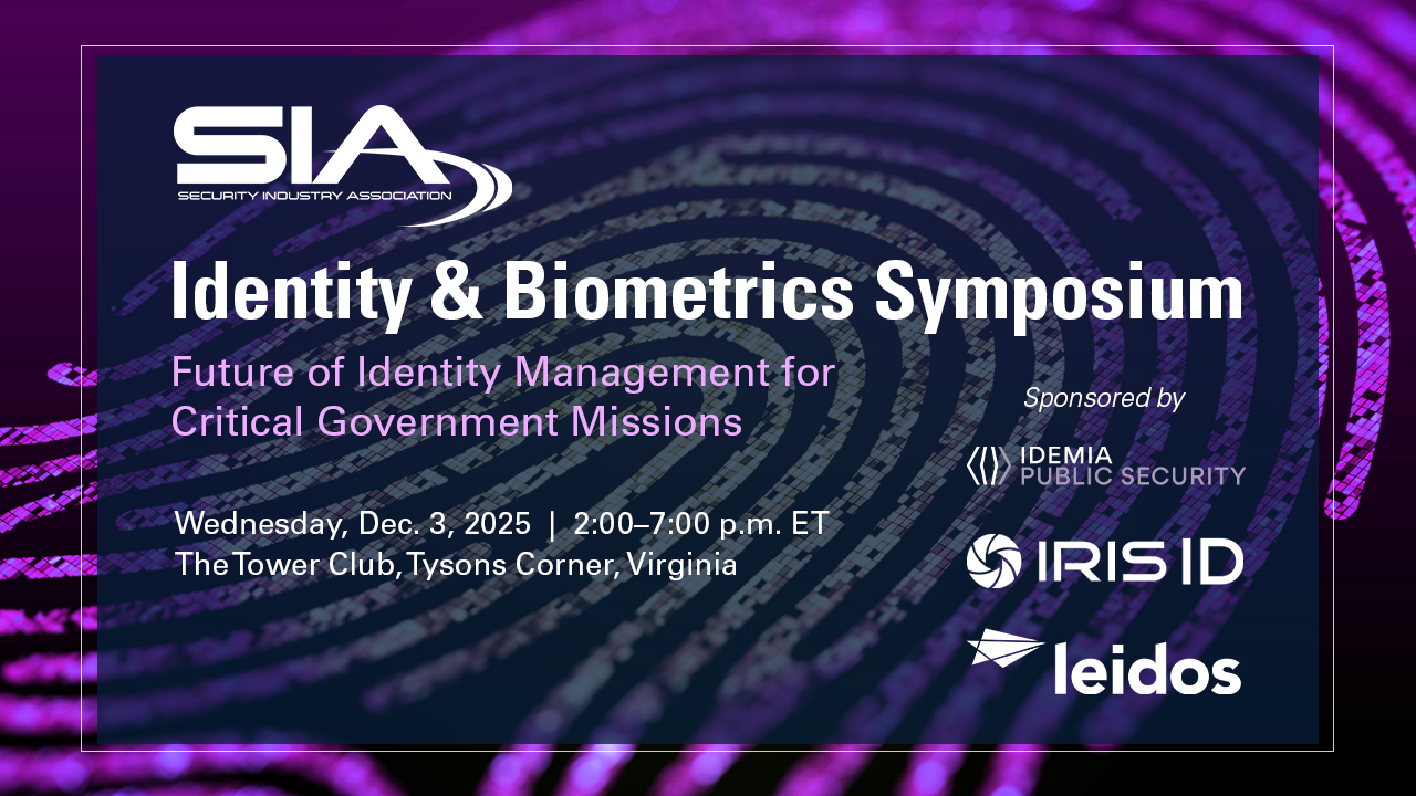 Please join us for SIA’s Identity and Biometrics Symposium on Dec. 3, 2025, presented by the SIA Identity and Biometric Technology Advisory Board (IBTAB) and the SIA National Capital Region Security Forum (SIA NCRSF), featuring experts from government and industry discussing key issues in biometrics and identity and celebrating the winners of the 2025 SIA Women in Biometrics Awards.