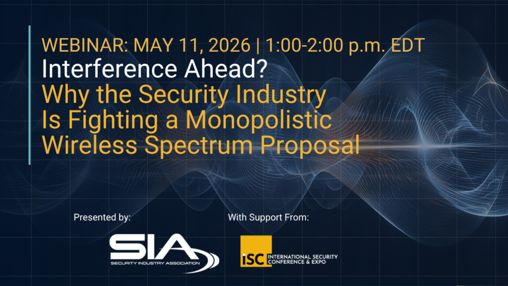 Join this webinar presented by SIA with support from ISC Security Events to learn about the proposal, get an update on where our advocacy efforts stand and discuss the impacts on the security industry devices that communicate in the spectrum.